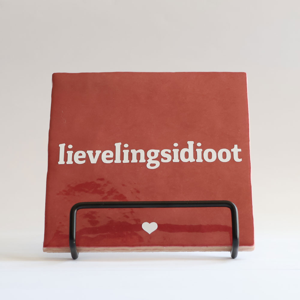 Dit handgemaakte tegeltje van 13 x 13 cm is met liefde gemaakt. Leuk om neer te zetten, op te hangen of cadeau te doen. Elk exemplaar is uniek, met kleine verschillen die horen bij echt handwerk. Wordt geleverd zonder staander.