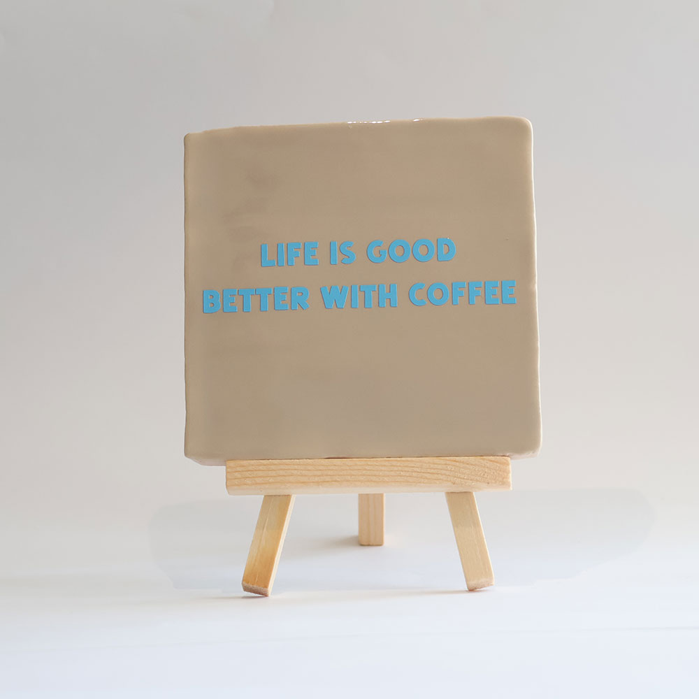 Dit handgemaakte tegeltje van 10 x 10 cm is met liefde gemaakt. Leuk om neer te zetten, op te hangen of iemand cadeau te doen. Omdat elk tegeltje met de hand wordt gemaakt, is geen enkel exemplaar precies hetzelfde én dat maakt het juist zo bijzonder. Wordt geleverd zonder staander.