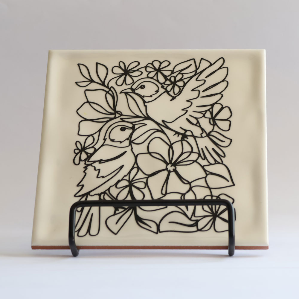 Een handgemaakt tegeltje van 15 x 15 cm, met zorg en aandacht gemaakt. Perfect als klein kunstwerkje in huis of als origineel cadeau. Elk exemplaar is uniek, met kleine verschillen die horen bij echt handwerk. Wordt geleverd zonder staander.